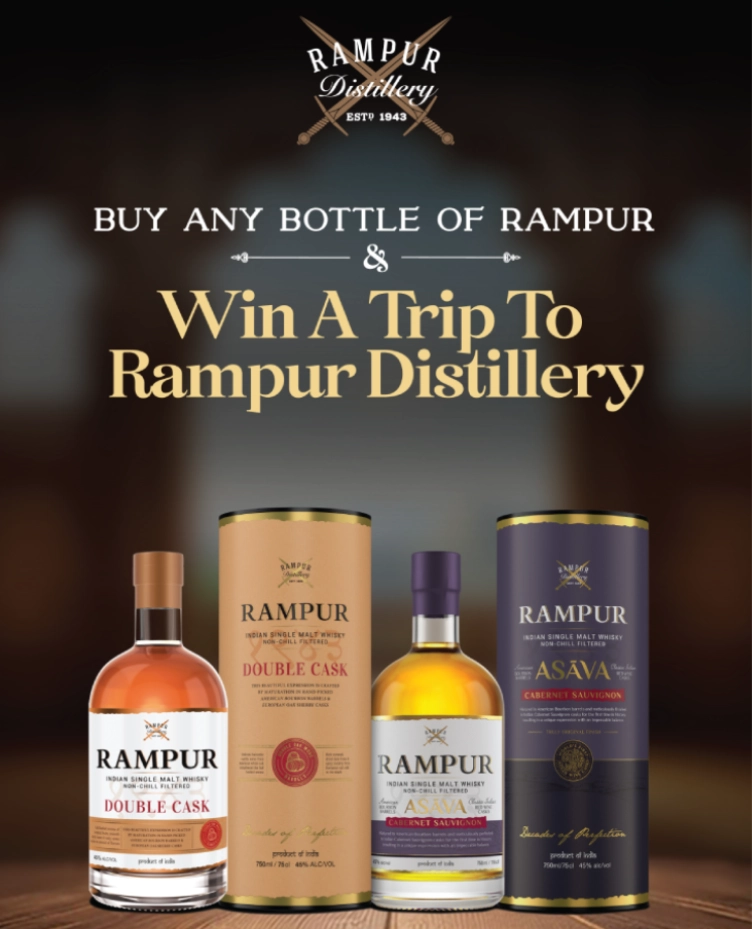 Buy any bottle of Rampur and win a trip to the Rampur Distillery. To be entered into the promotion lucky draw, you must answer the following question correctly.