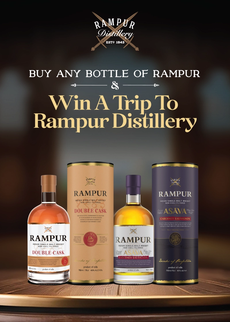 Buy any bottle of Rampur and win a trip to the Rampur Distillery. To be entered into the promotion lucky draw, you must answer the following question correctly.